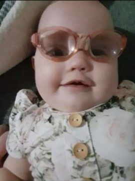 ministered four times each day. Avery has also been fitted with pediatric eyewear containing prescription lenses to correct the astigmatism created by her corneal transplants. “Thankfully, Avery is a very happy baby who rarely cries,” stated Emily when asked how Avery tolerates her eyecare regime. “However, she is going through a phase where she will not wear her glasses!”